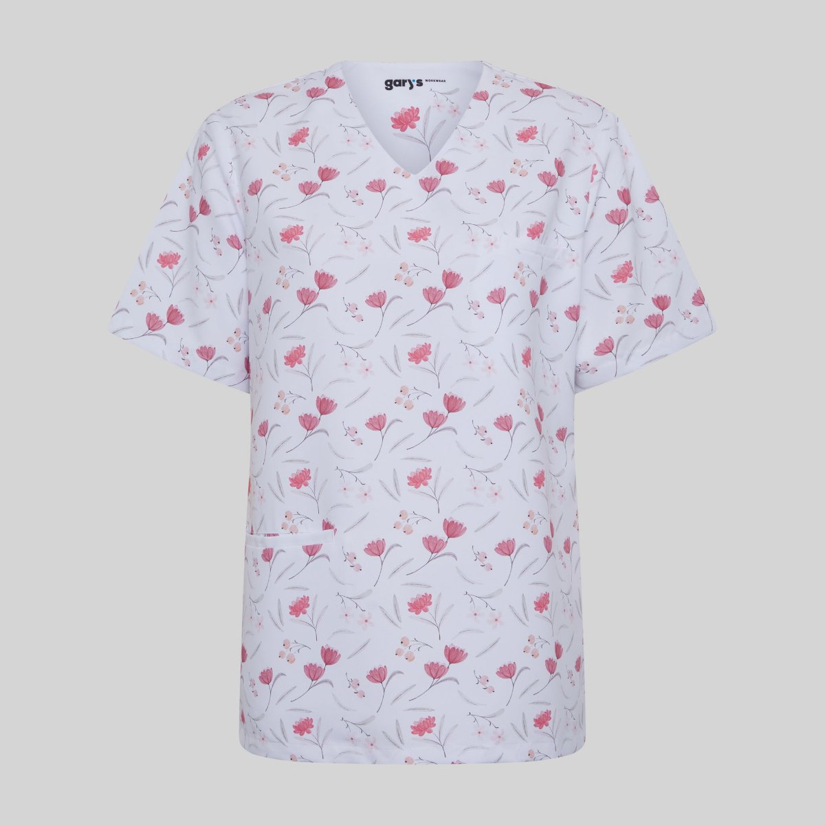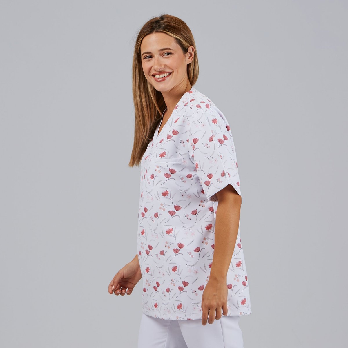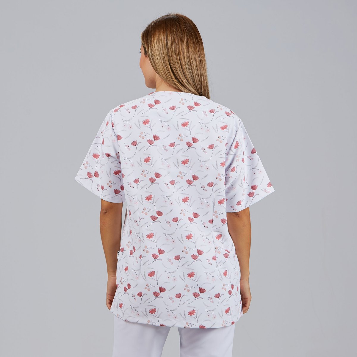 Blusa sanitaria estampada Corola unisex Mika – ligereza, comodidad y una imagen profesional impecable