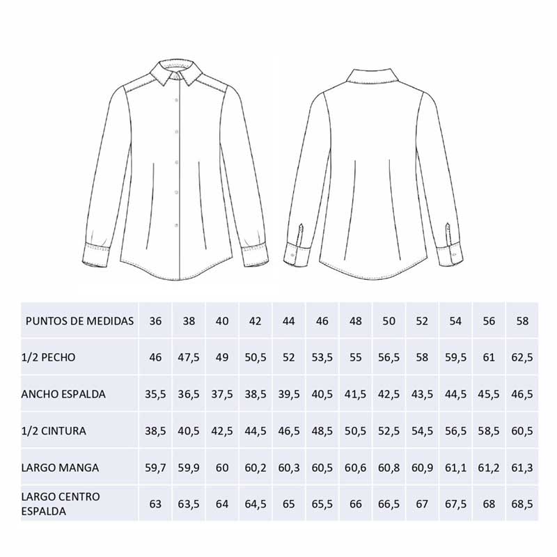 Tallas: 36 – 38 – 40 – 42 – 44 – 46 – 48 – 50 – 52 – 54 – 56