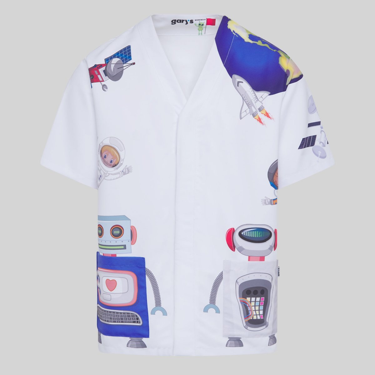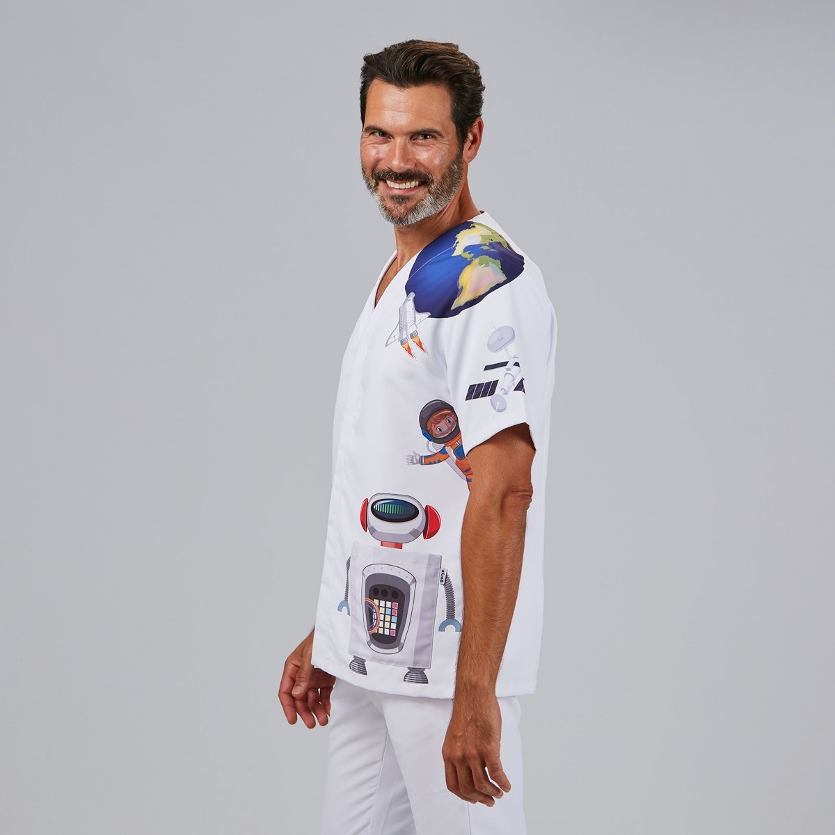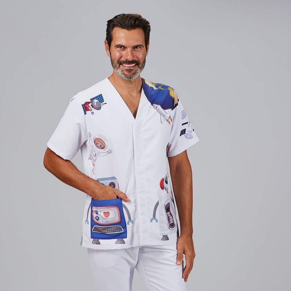 Esta casaca es ideal para profesionales sanitarios, personal de clínicas pediátricas, centros educativos, guarderías o comercios. Su estampado Astronauta aporta un aire divertido y cercano, perfecto para generar un ambiente más agradable, especialmente en trabajos con niños o atención al público.