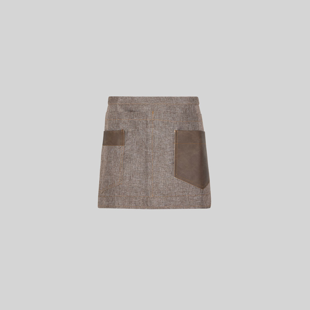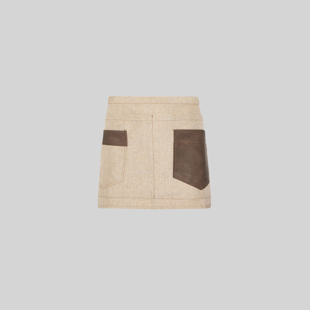 Con un diseño que combina elegancia y practicidad, este delantal corto es ideal para quienes buscan destacar sin renunciar a la comodidad. Su tejido efecto arpillera aporta una estética cálida y original, mientras que los detalles en polipiel marrón elevan el estilo con un aire moderno y profesional. Pensado para acompañarte durante toda la jornada, este modelo ofrece funcionalidad real sin perder personalidad.