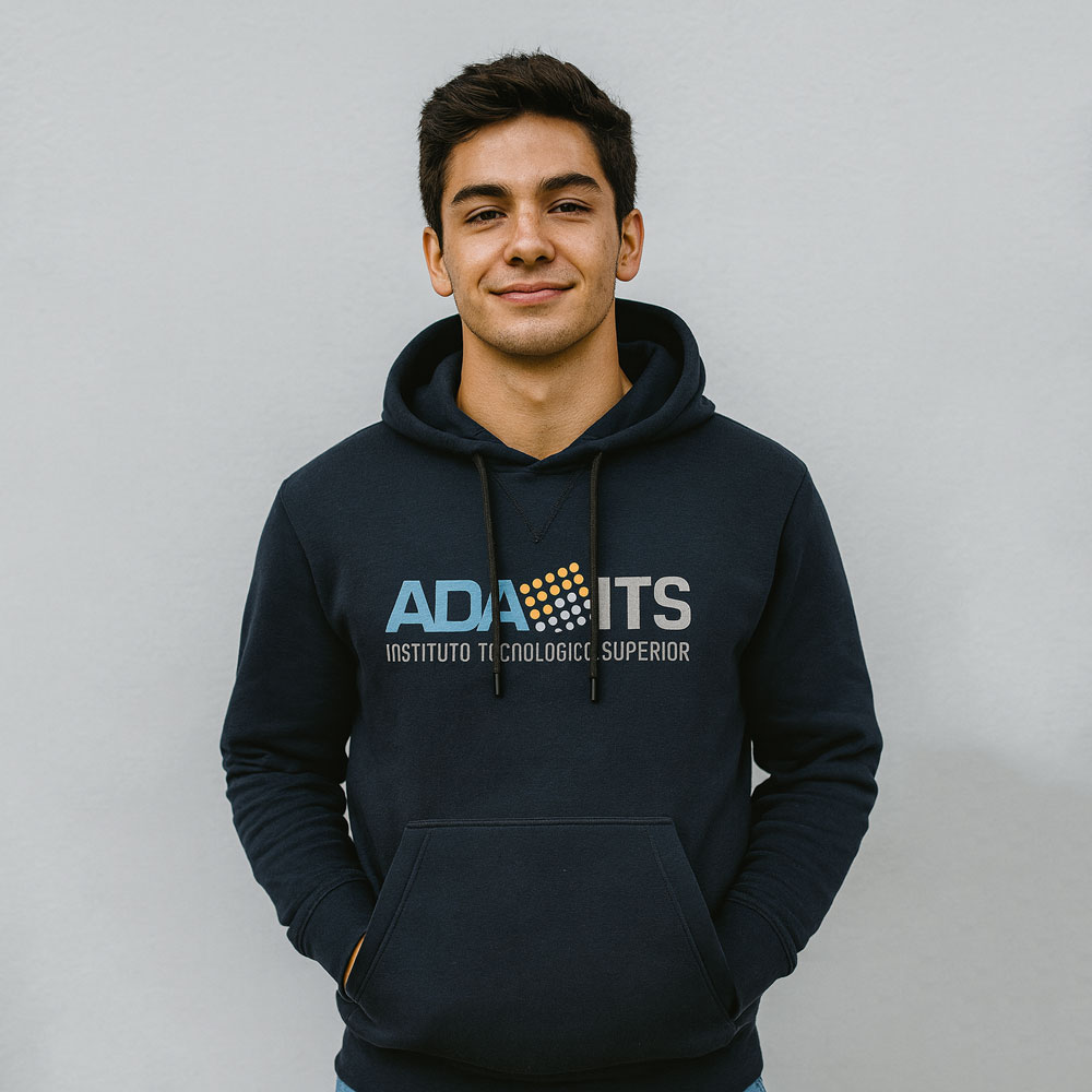 Sudadera oficial del Instituto ADA ITS con logotipo central, capucha ajustable, bolsillo canguro y tejido perchado. Cómoda, resistente y pensada para el alumnado.