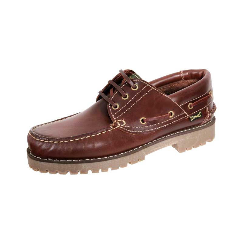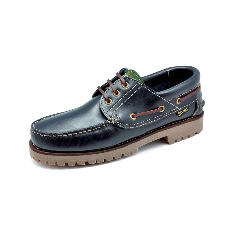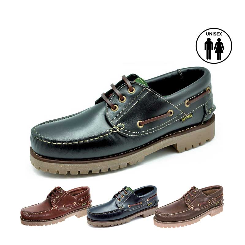 Calzado laboral estilo náutico, de piel, con cierre de cordones y unisex.