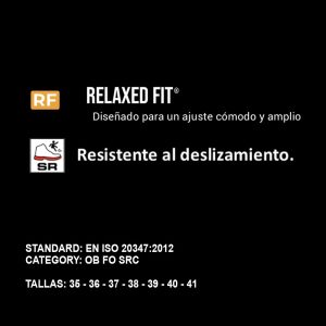 Calzado de trabajo cerrado, antideslizante y transpirable con suela antibacteriana para trabajar durante horas con la máxima comodidad.